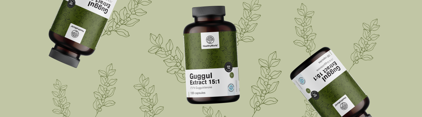 Guggul (Commiphora mukul) with high content of guggulsterones has numerous beneficial properties for the human body, which have been recognized in Ayurveda for thousands of years: