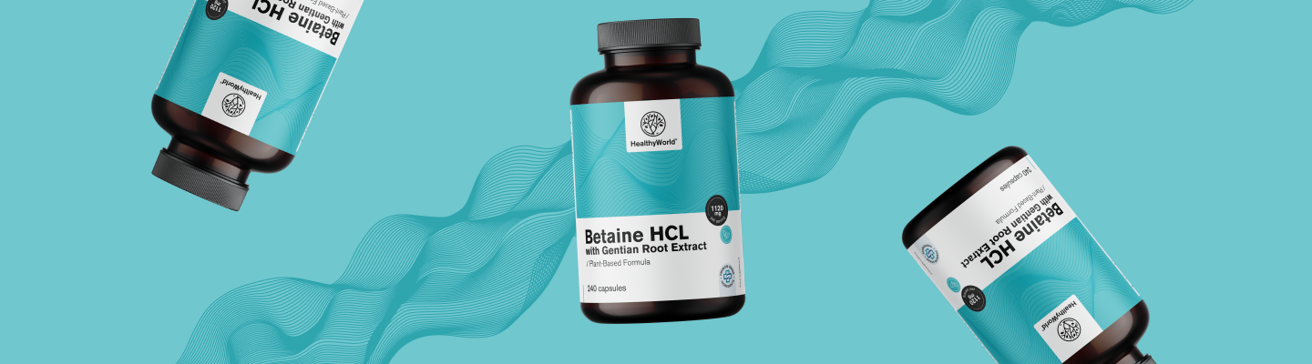 Betaine HCL or betaine hydrochloride is a natural compound that can act as an additional source of hydrochloric acid in the body, influencing stomach acidity. Higher acidity in the stomach is essential for: